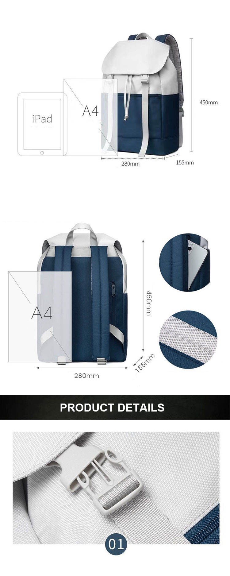 방수 노트북 도난 방지 drawstring 여행 대학 학교 bookbag
