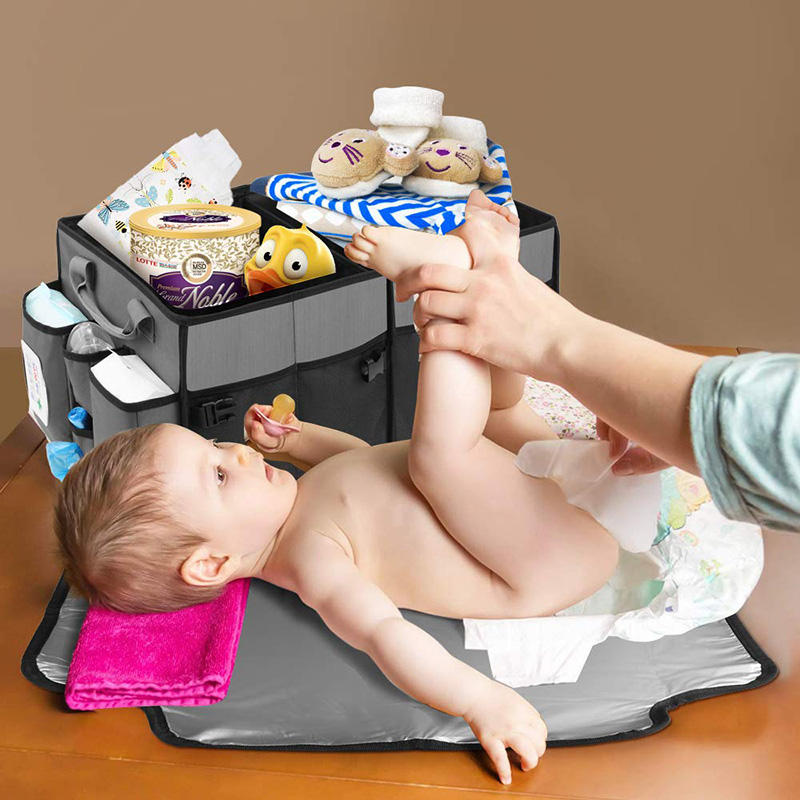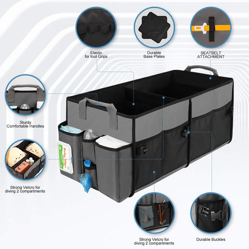 대용량 아기 기저귀 캐디 주최자 이동식 칸막이가있는 접을 수있는 트렁크 자동차 주최자