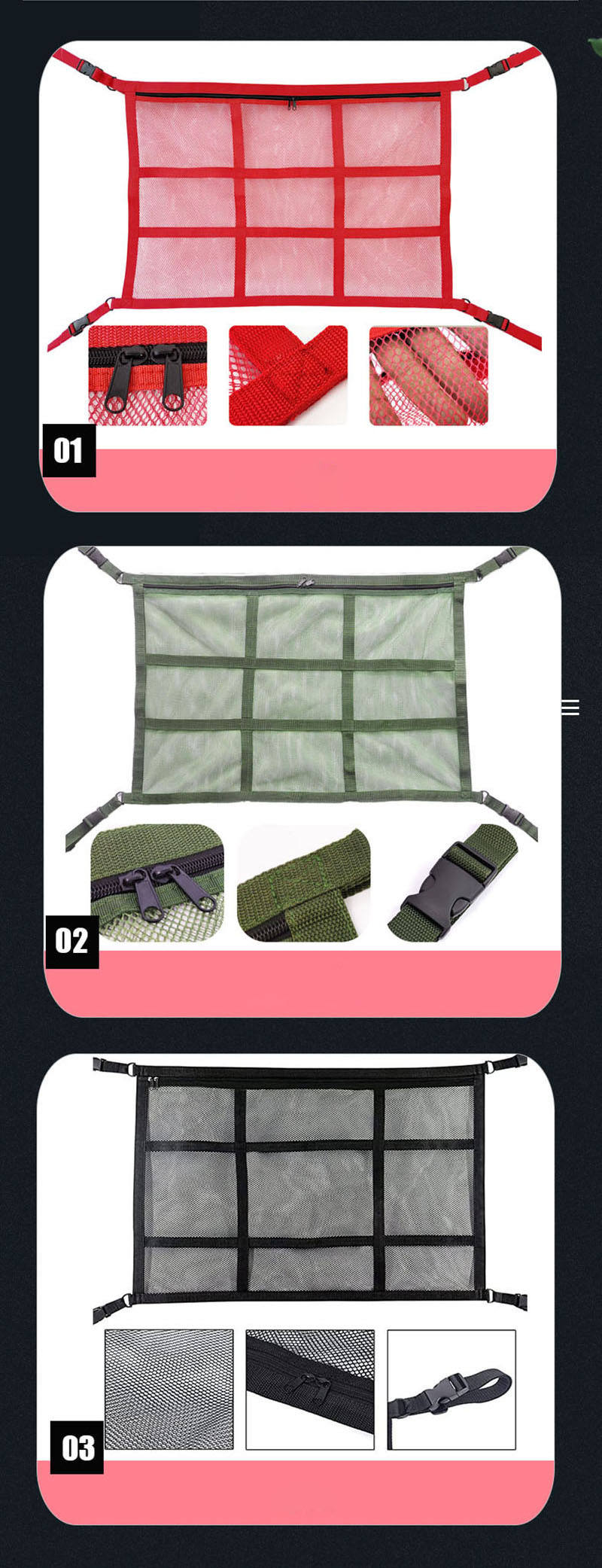 자동차 스토리지  메쉬 그물 지붕 그리드 밴드 강화와 더블 레이어 메쉬 가방