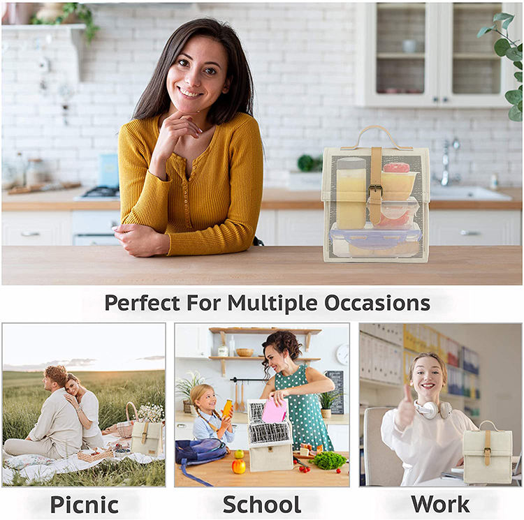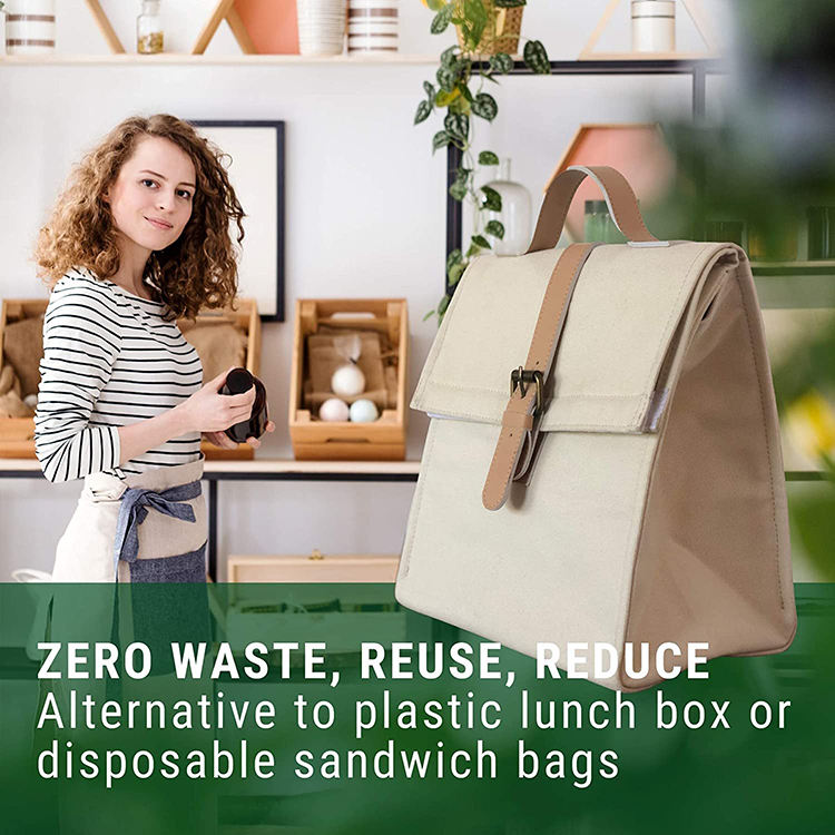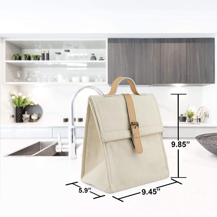 가죽 손잡이 사용자 정의 빈 절연 왁스 캔버스 점심 토트 백