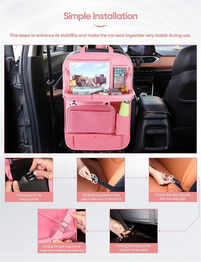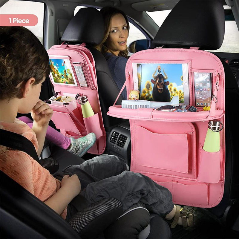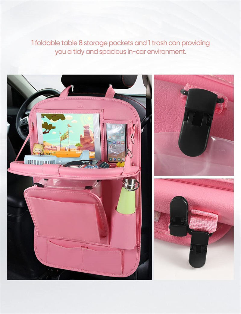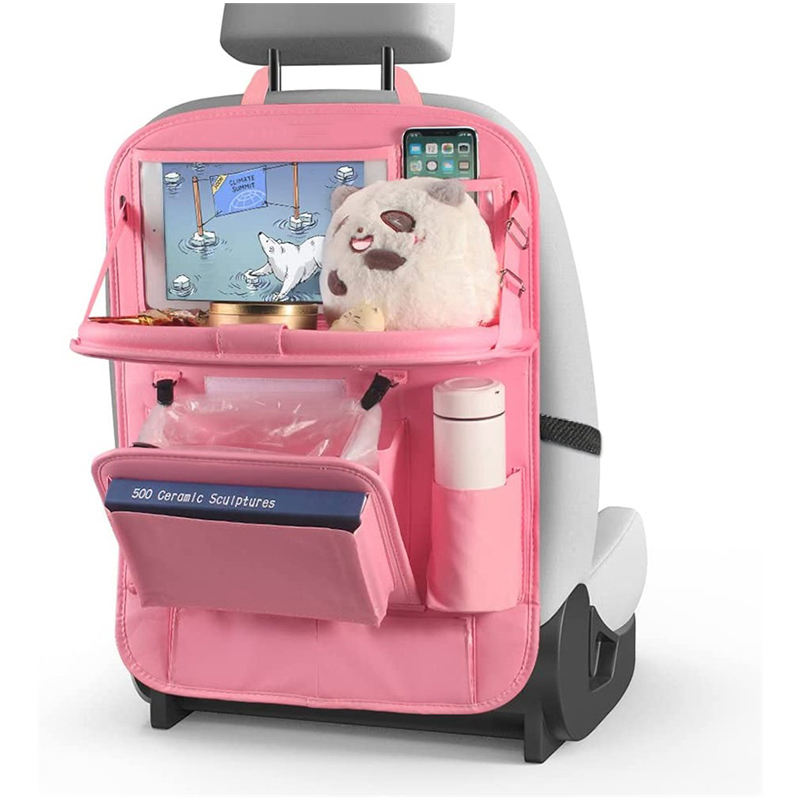 쓰레기통있는 뒷좌석 접이식 테이블 트레이가있는 PU 가죽  터치 스크린 태블릿 홀더