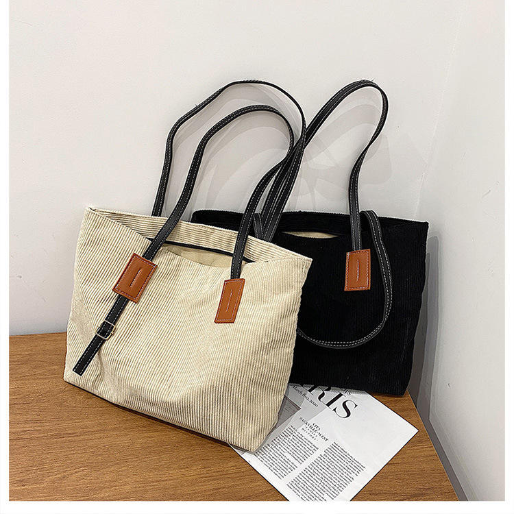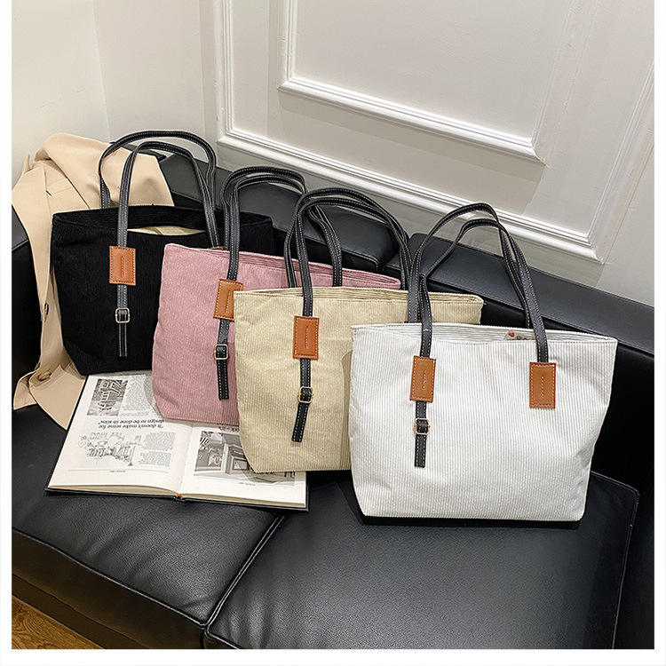 패션 유기농 코듀로이 토트 백 스트랩 캔버스 어깨에 매는 가방