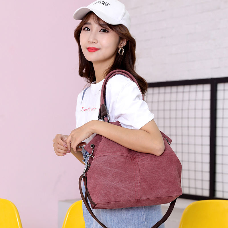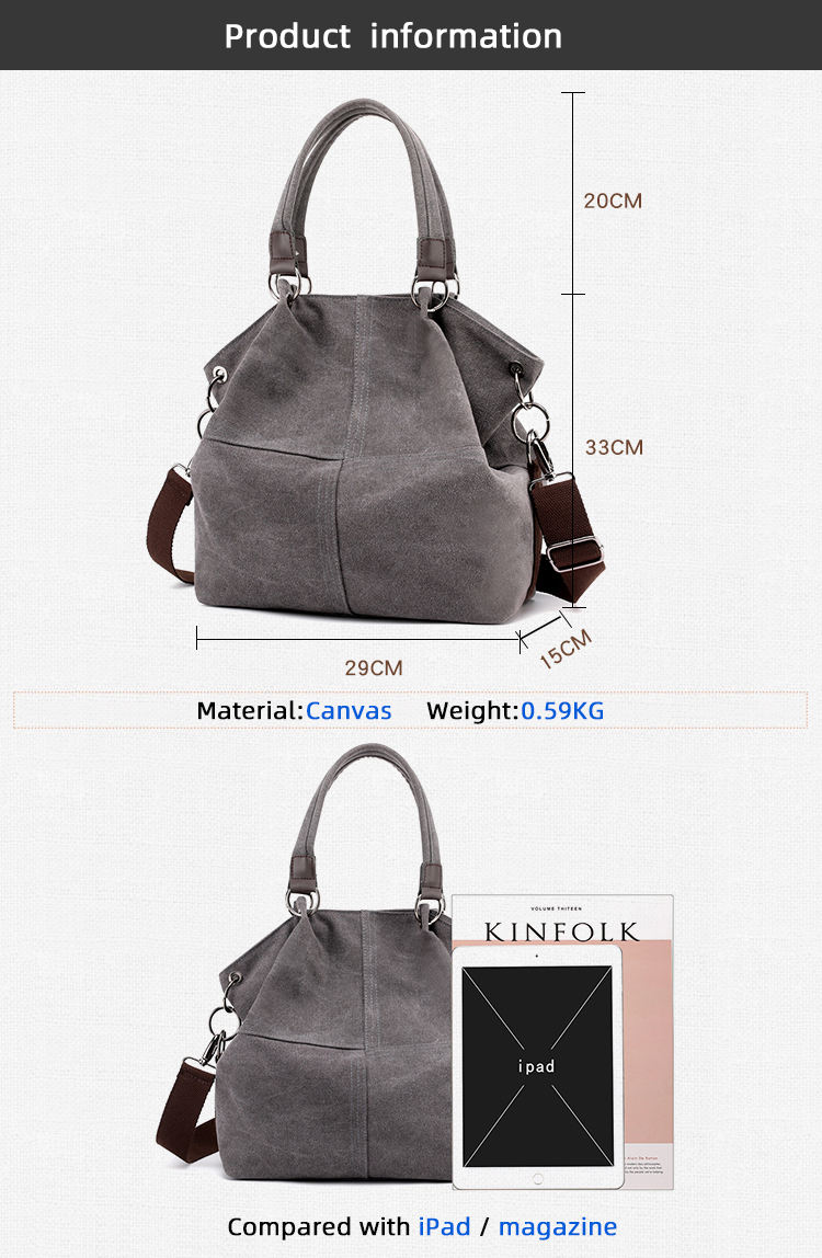 여성용 캔버스 빈티지 숄더 백  대형 토트 탑 핸들  핸드백