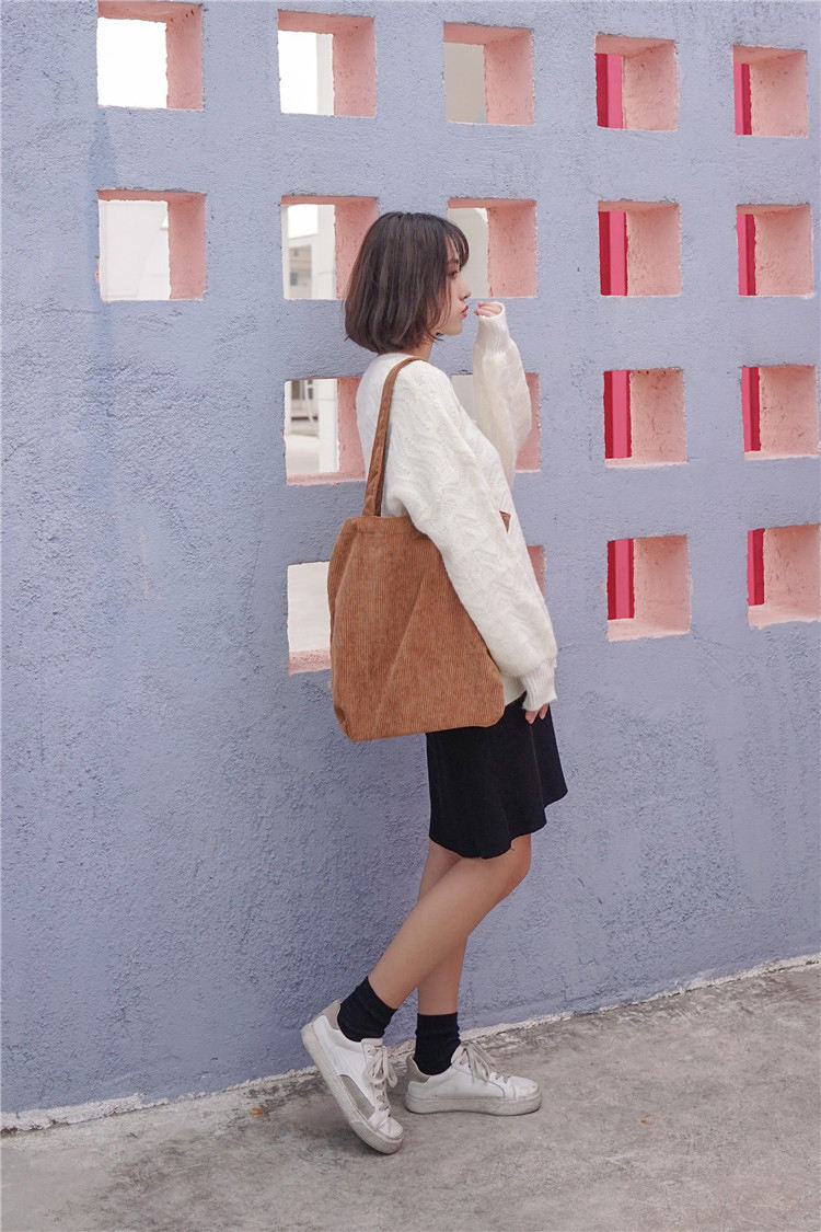 여성 코듀로이 쇼핑백 숄더백 접이식 에코 식료품 토트