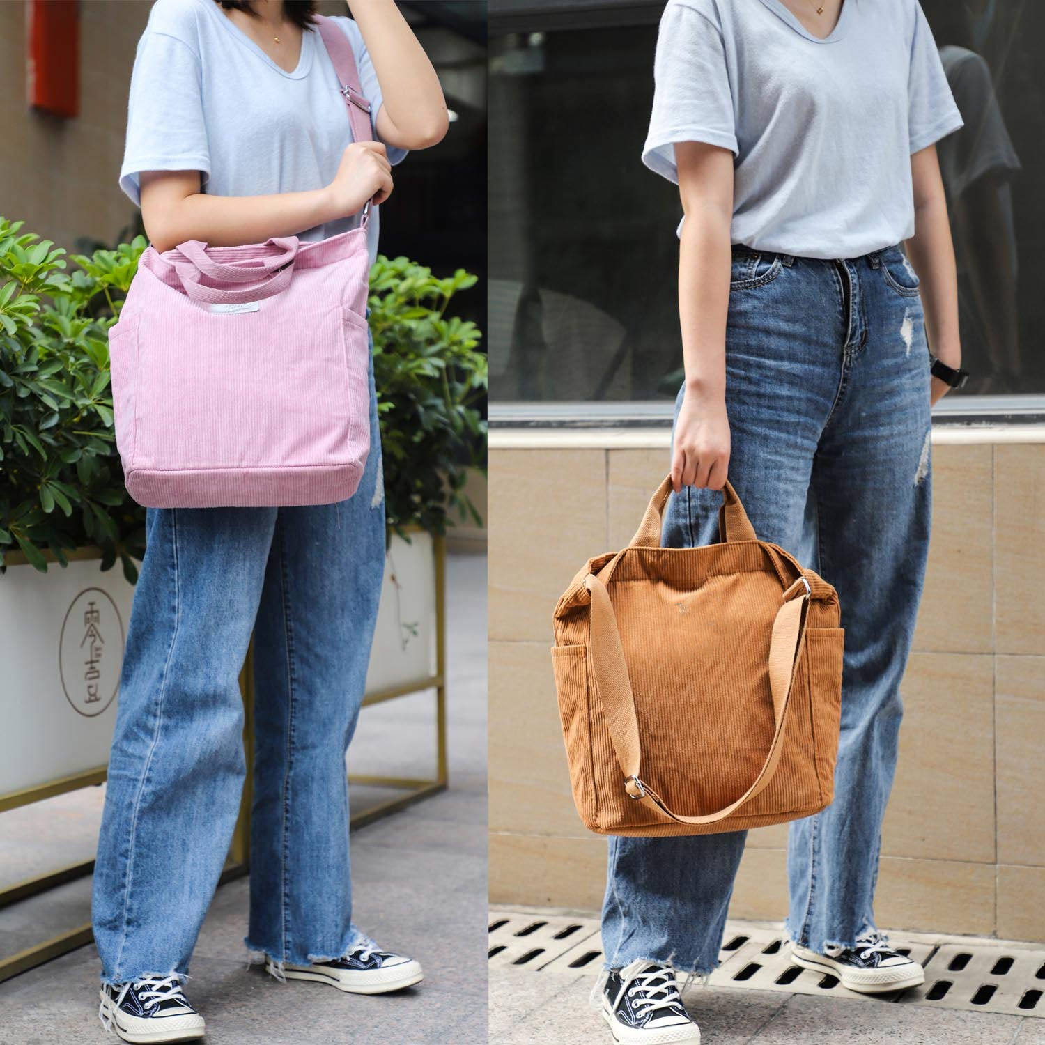 대용량 대형 토트 백 여성용 크로스 바디 숄더 핸드백 쇼핑백 orduroy Messenger Hobo Bag