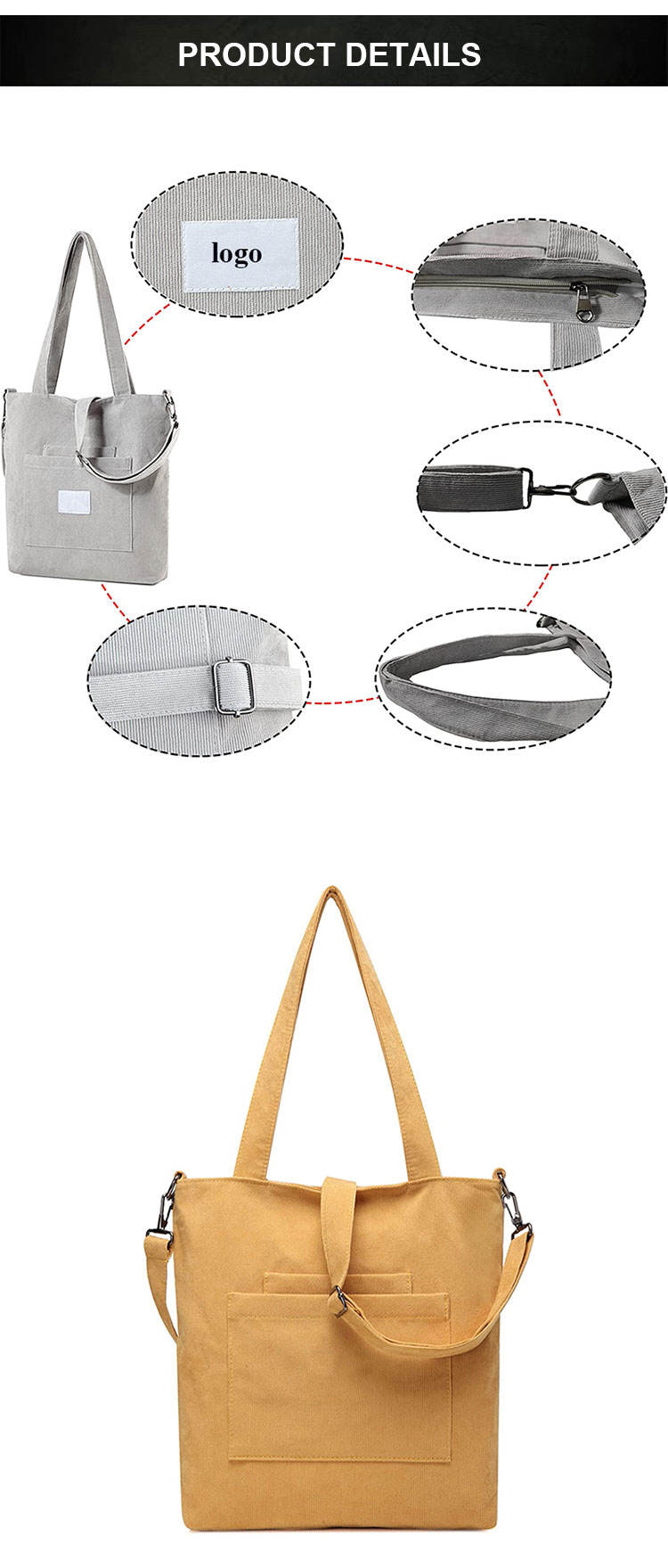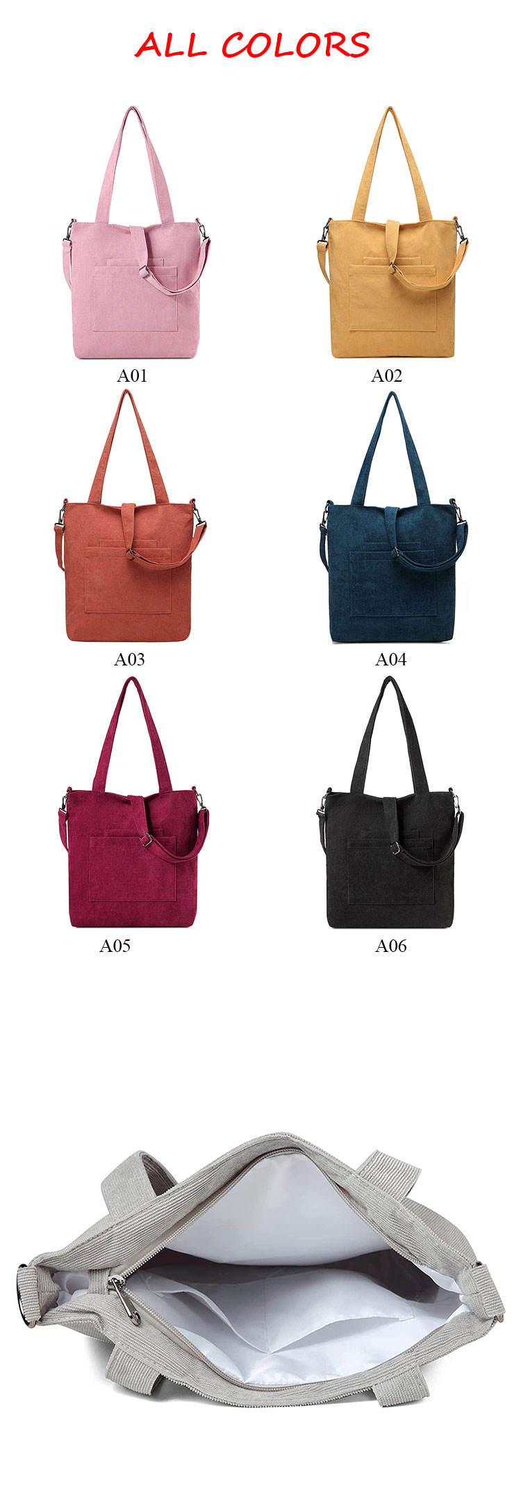 주머니를 가진 여자 큰 수용량  유행 코듀로이 어깨 끈달린 가방