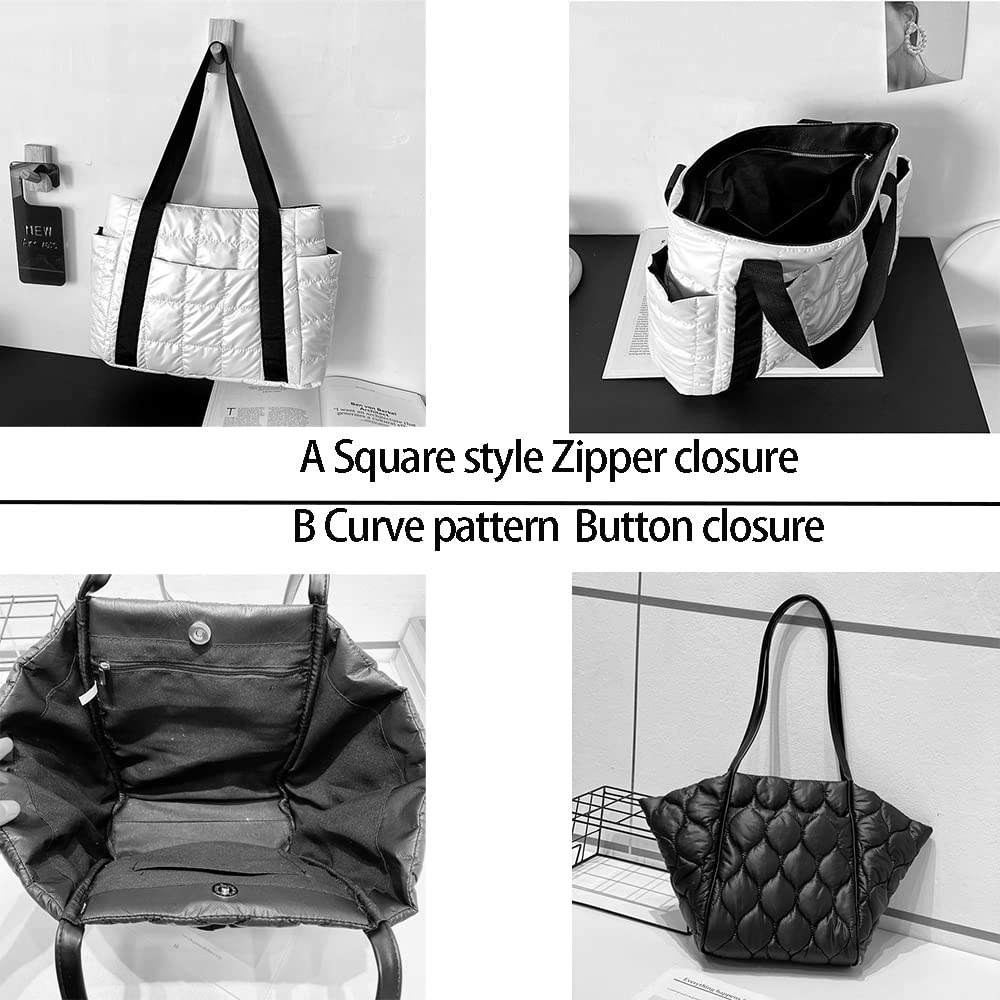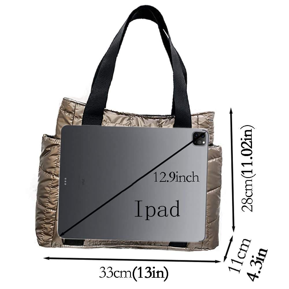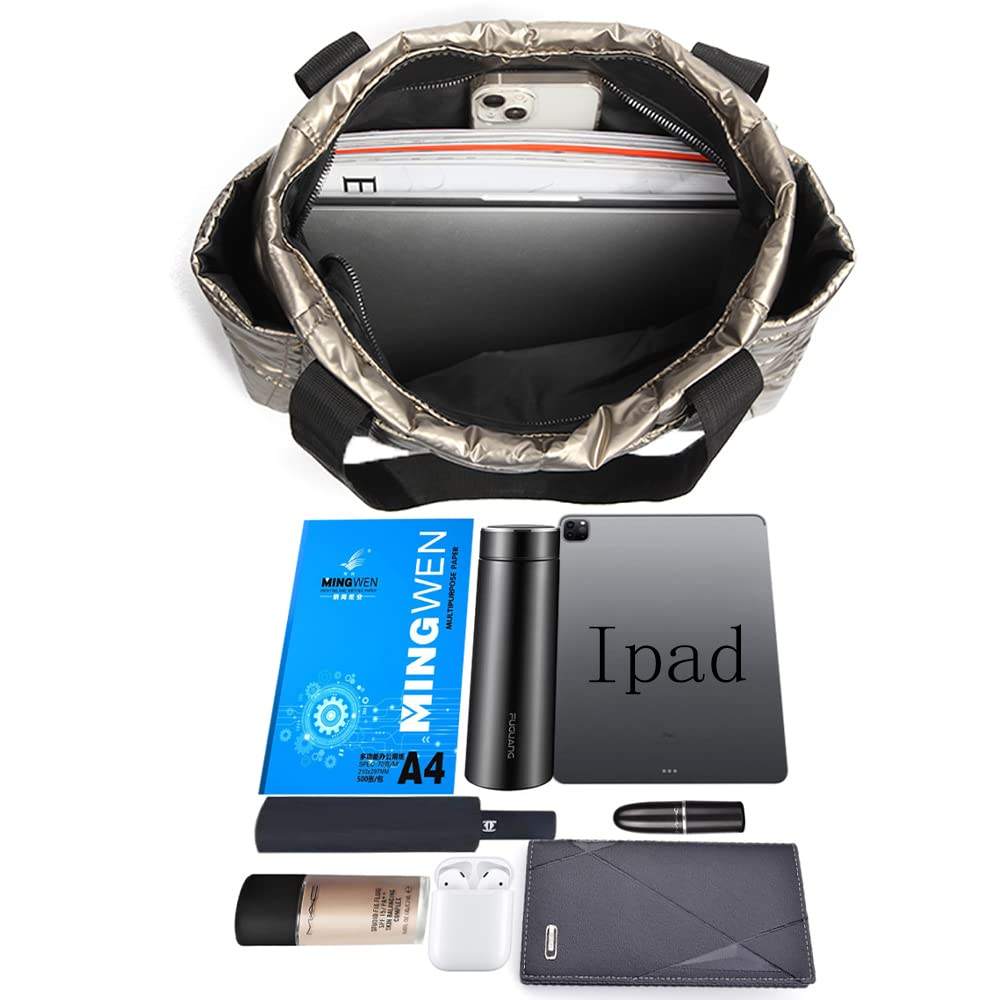 대용량 퀼트 여성 퍼퍼 토트 백 노트북 메탈릭 푹신한 숄더 백