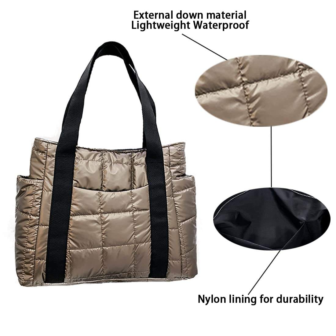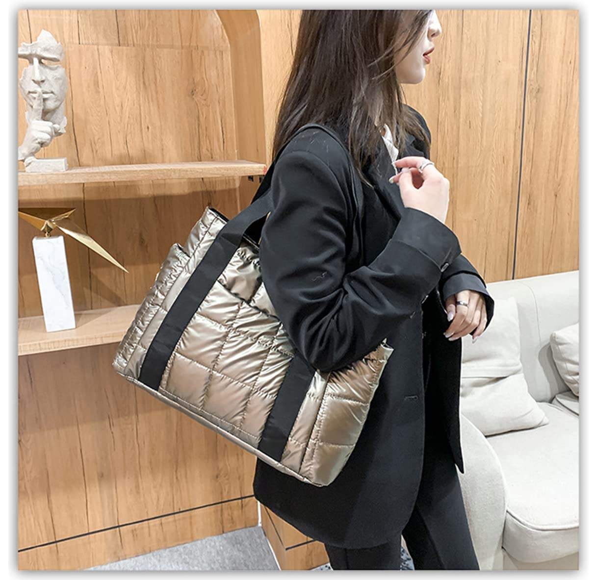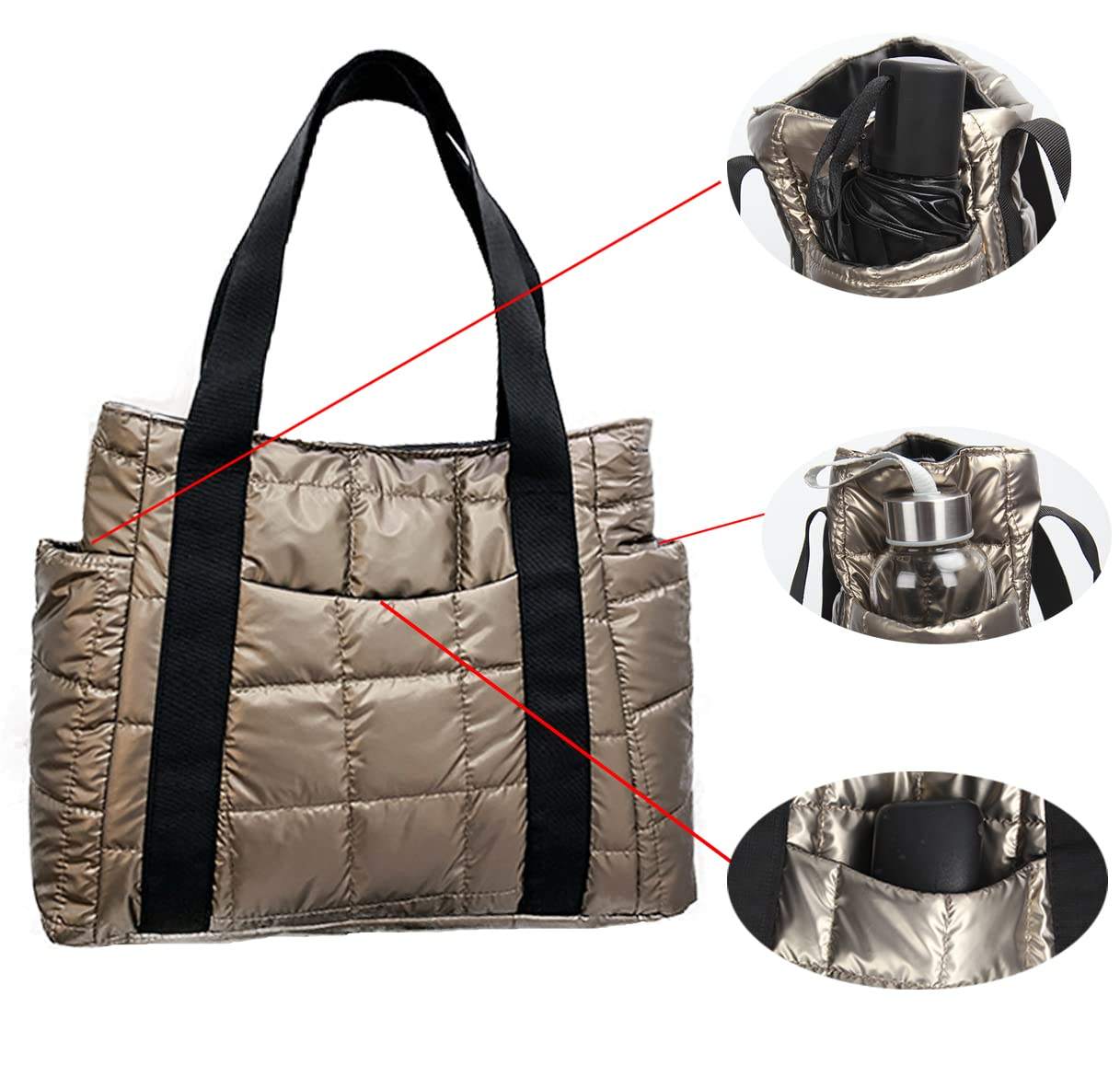 대용량 퀼트 여성 퍼퍼 토트 백 노트북 메탈릭 푹신한 숄더 백