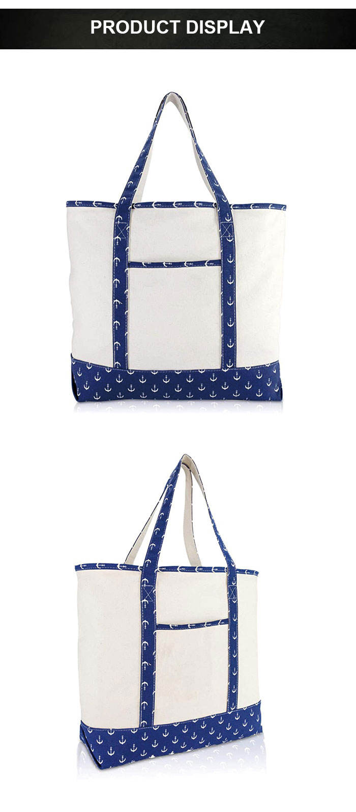 외부 포켓이 대용량 코튼 캔버스 쇼핑 토트 백