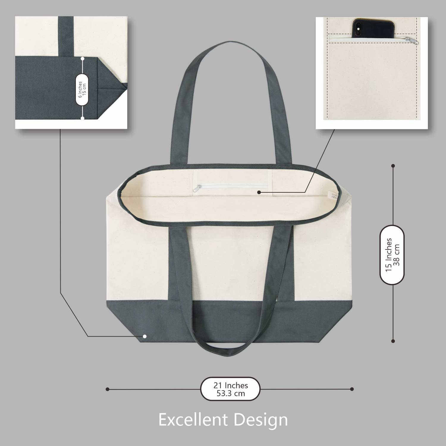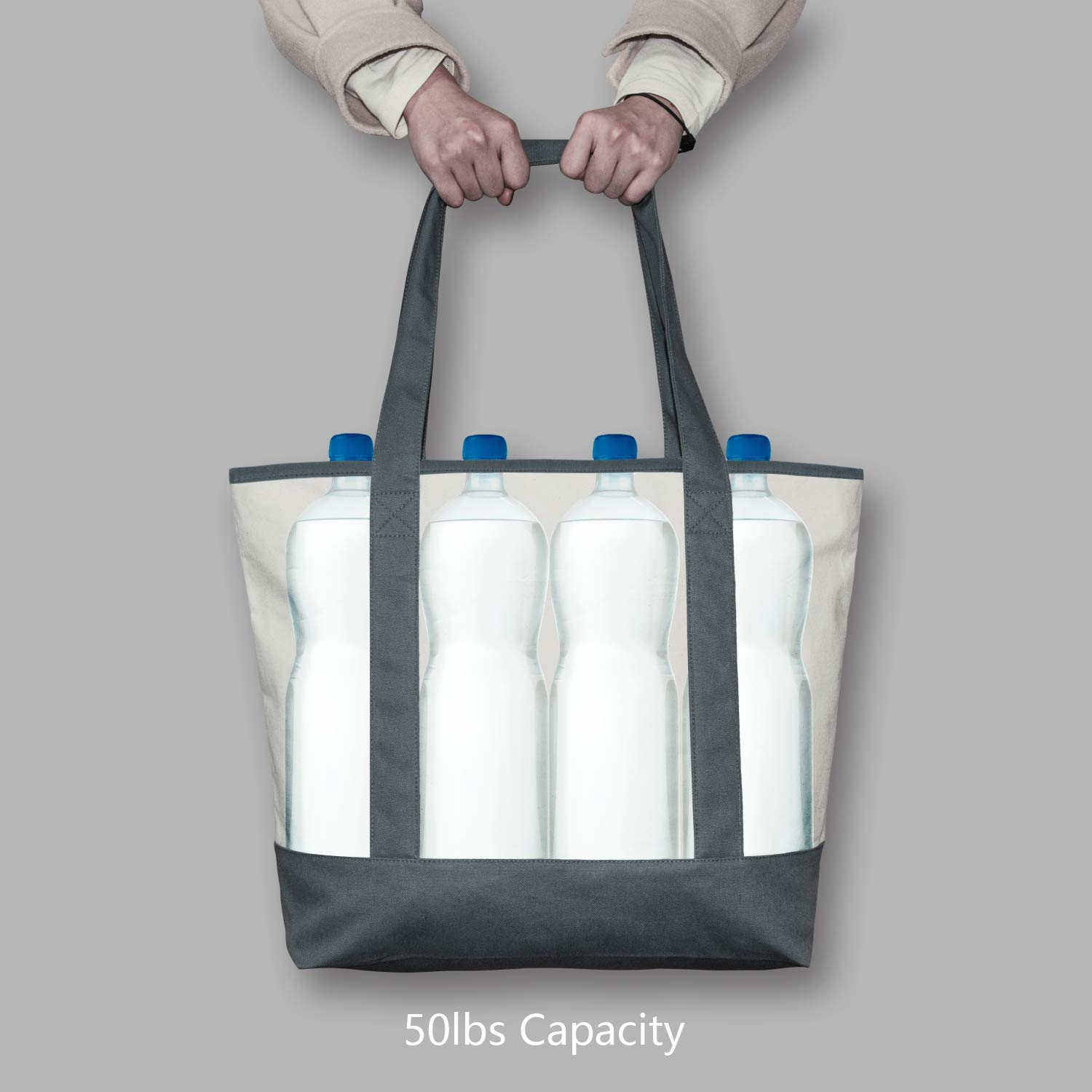 대용량 면 오픈 탑 캔버스 단열 쿨러 토트 백