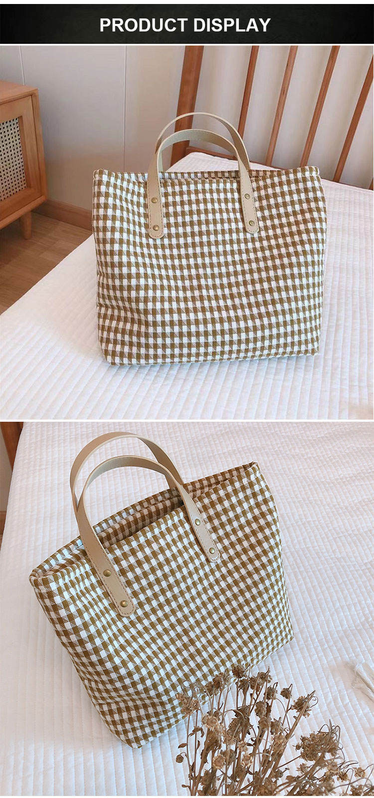 여성 대형 면화 핸드백 토트 백 캐주얼 백