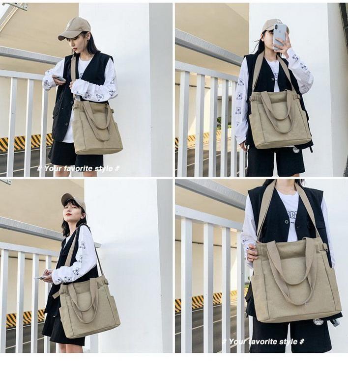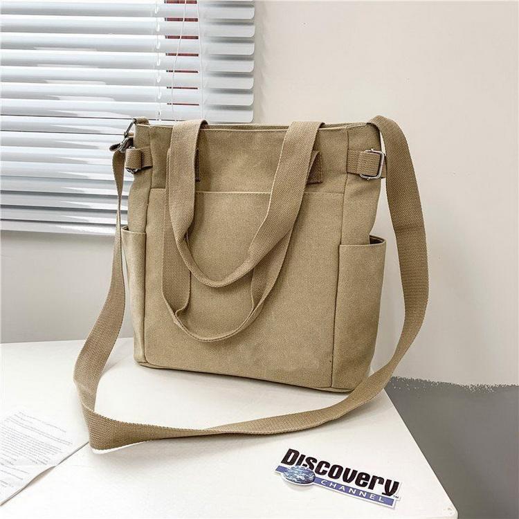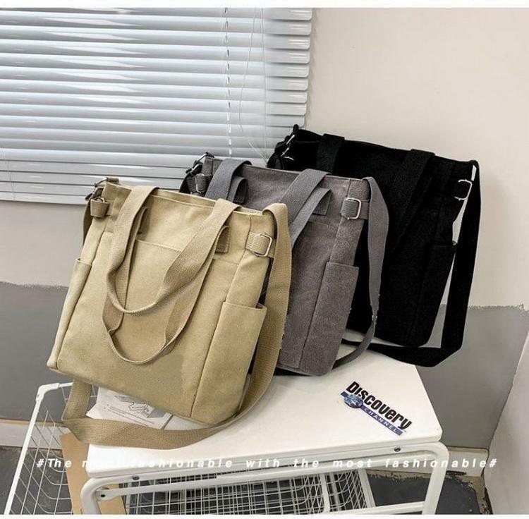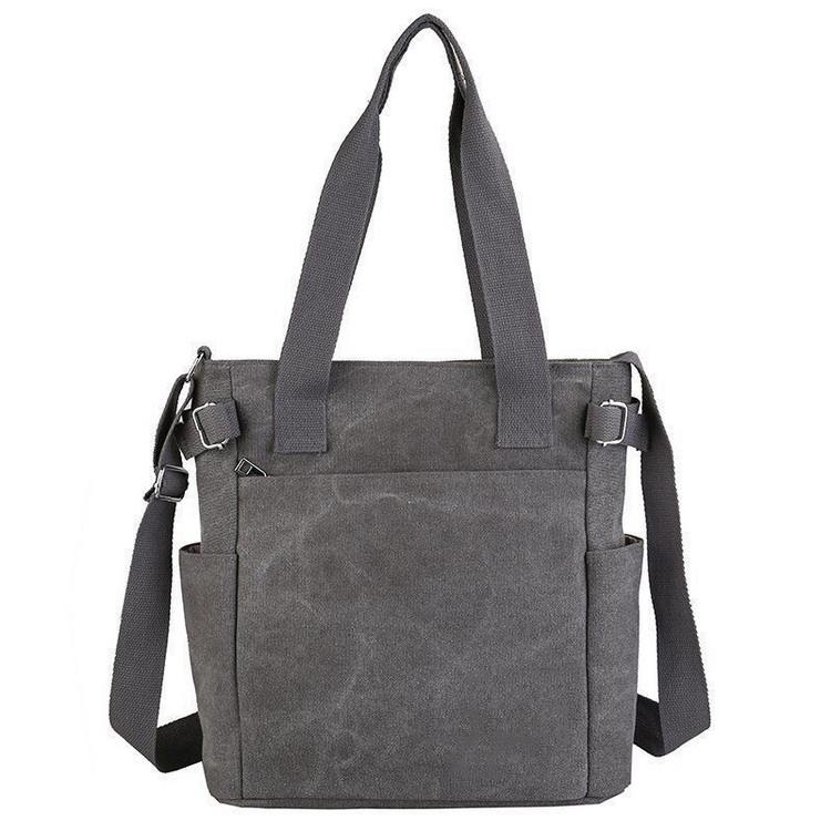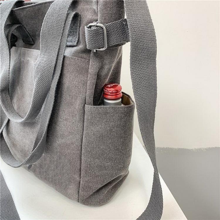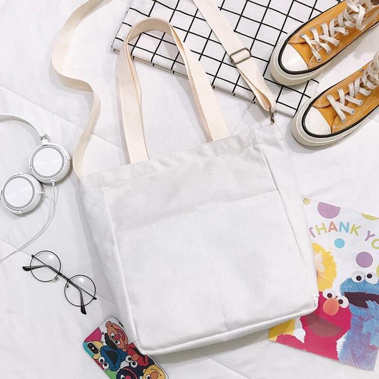 코튼 긴 스트랩 내부에 구획이있는 코튼 토트 백