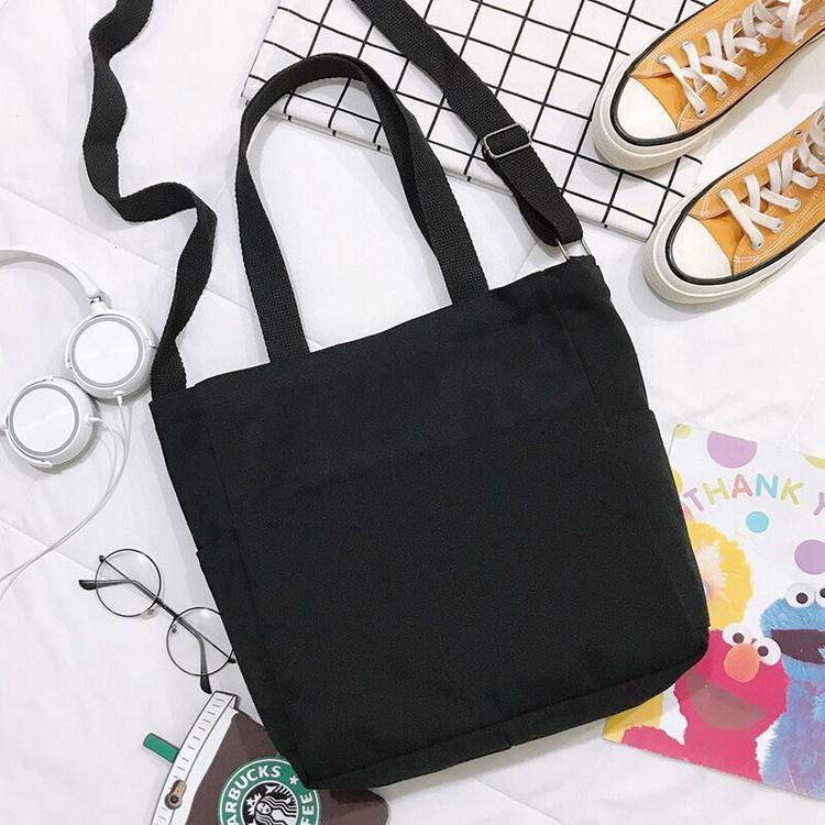 코튼  긴 스트랩 내부에 구획이있는  코튼 토트 백