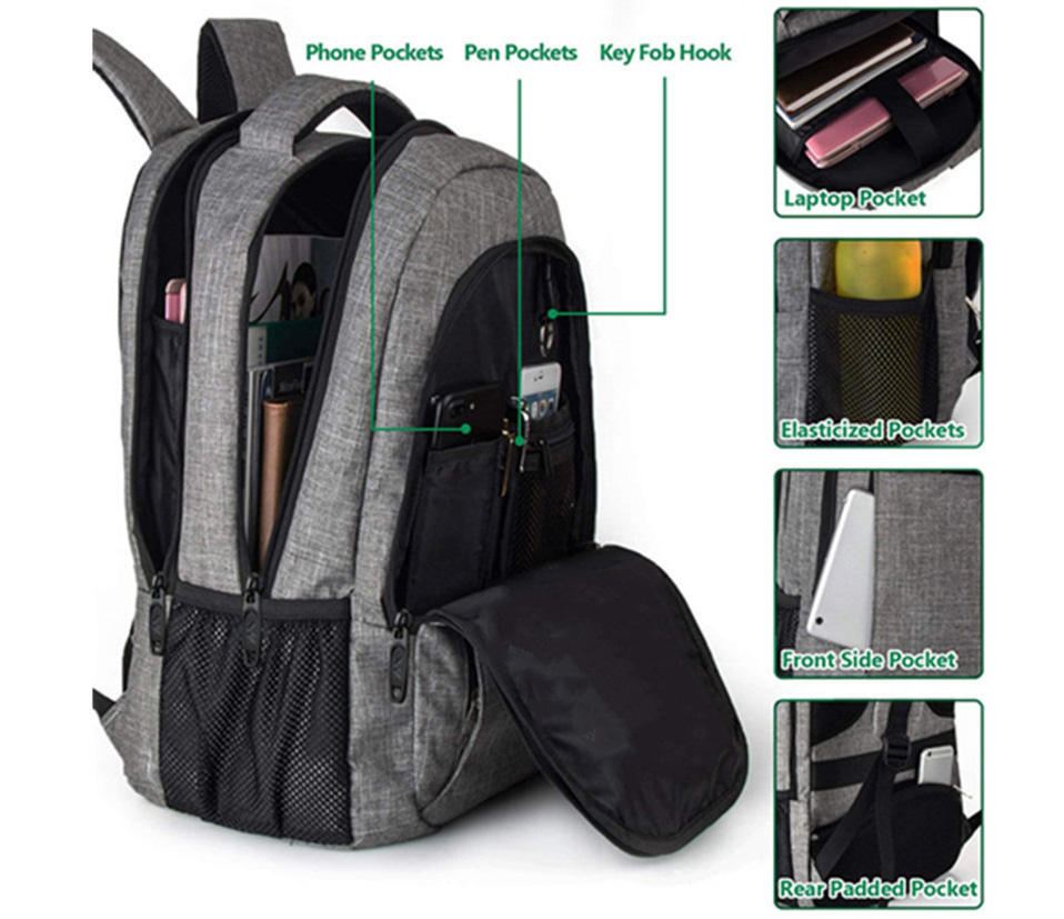 USB 충전 포트, 방수 학교와 여행  비즈니스슬림 내구성 노트북 배낭