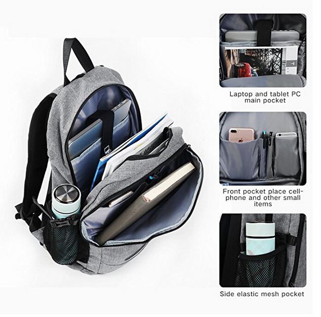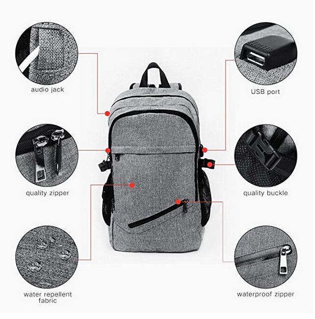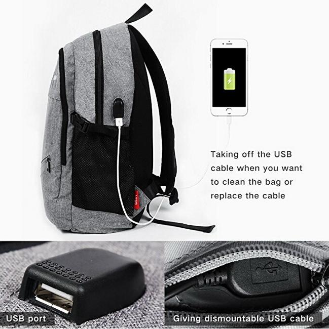 유행 면 화포 usb를 가진 방수 학교 노트북 책가방 배낭