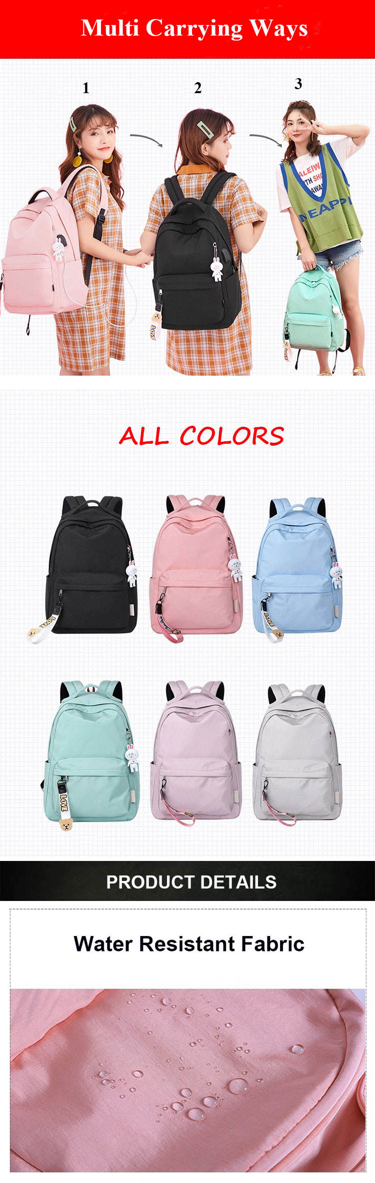 방수 학생 책가방 경량 학교 여행 일 bookbag