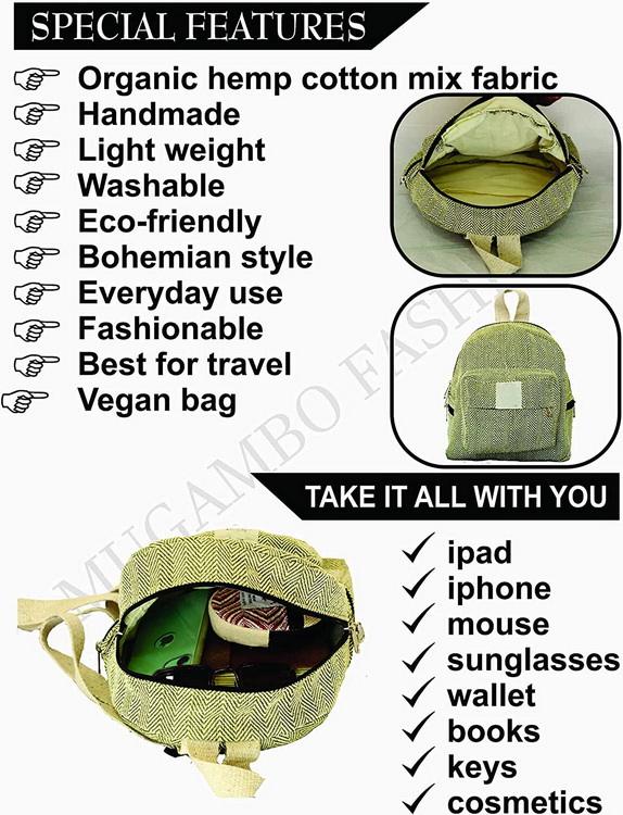 BSCI 제조업체  친환경 면 100% 대마 배낭 노트북 가방