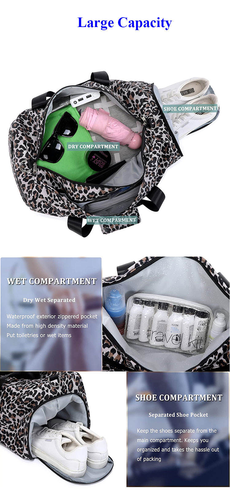 방수 체육관 여행 토트 더플 백 주말 여성 여행 더플 백