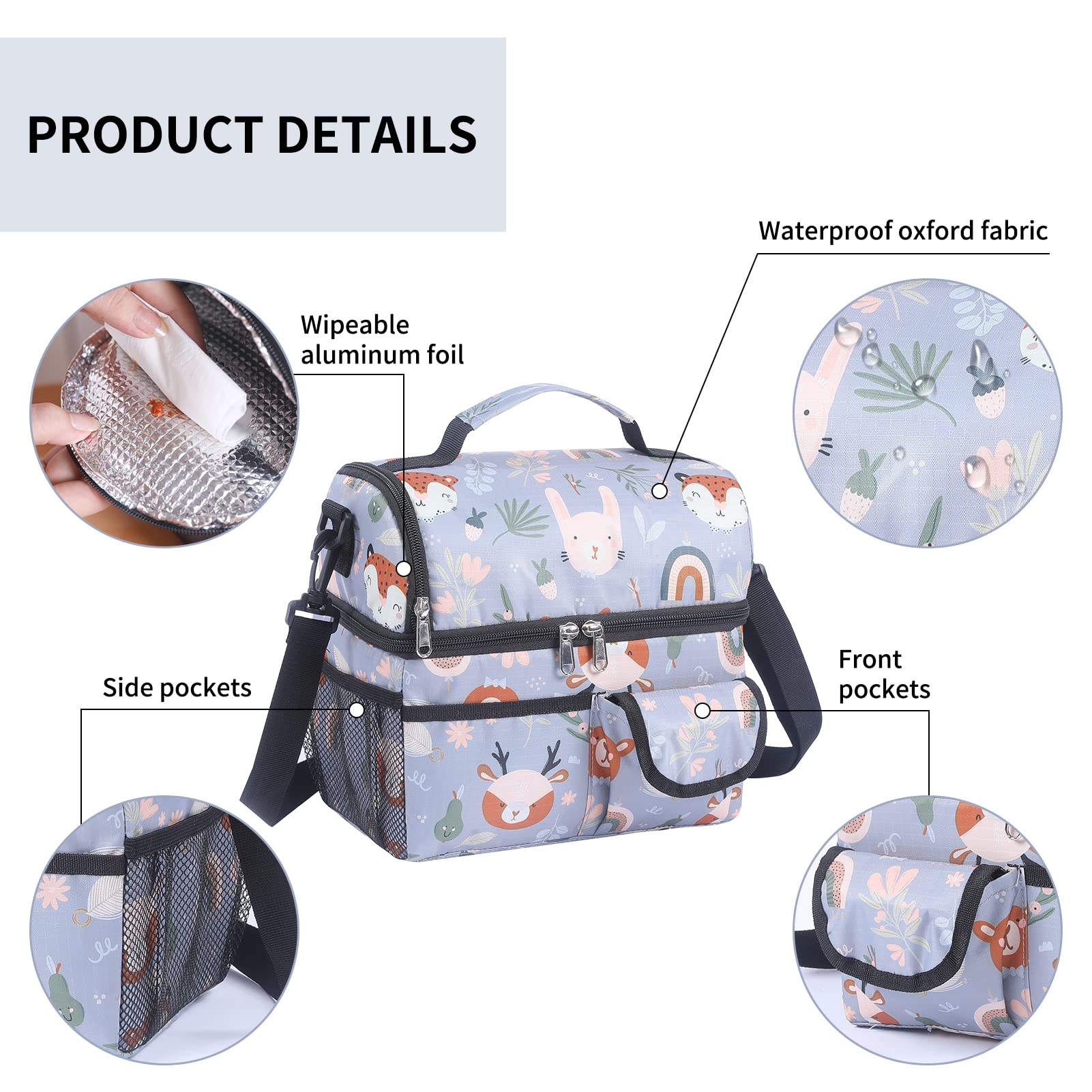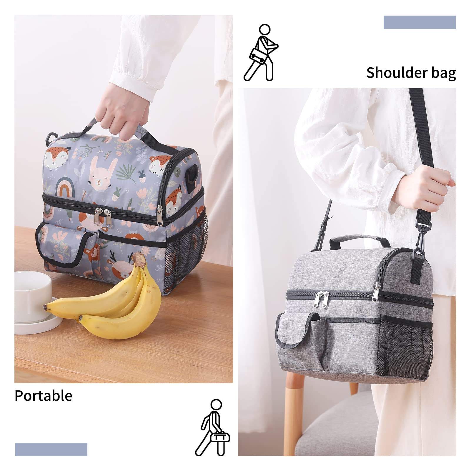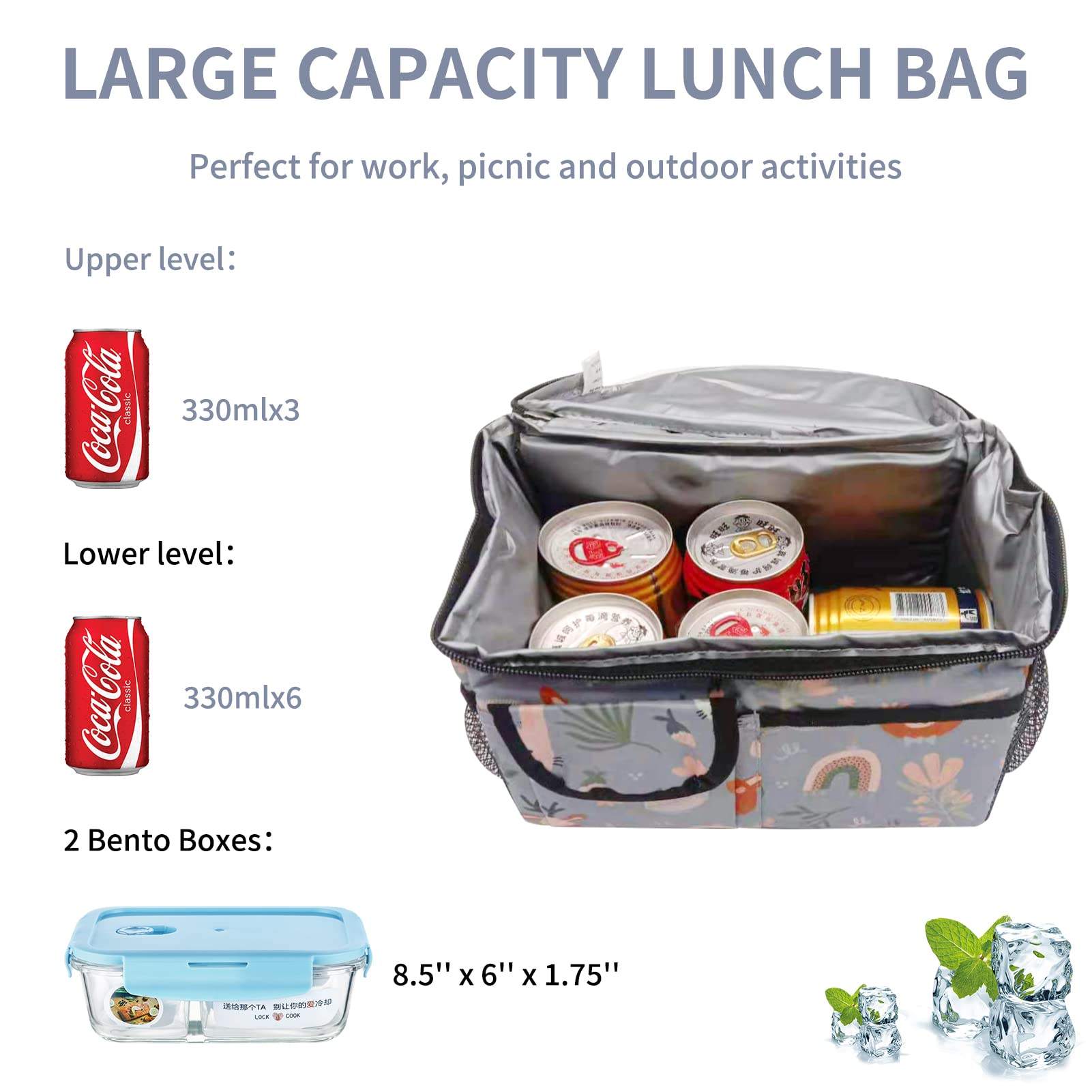 대형 2 구획 절연 점심 가방
