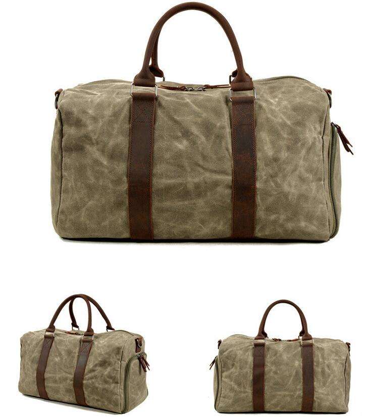 헤비 듀티 레트로 왁스캔버스 요가 여행 가방 신발 가죽 손잡이가있는 백