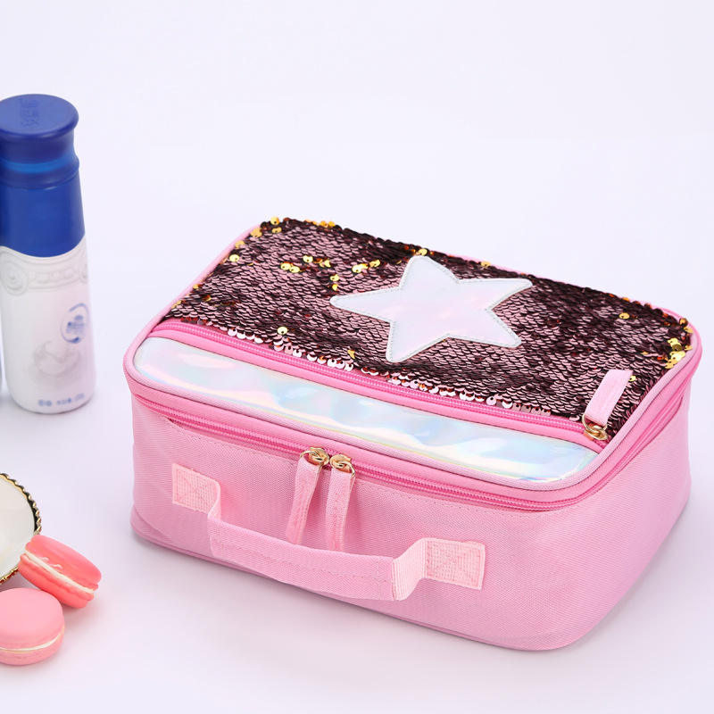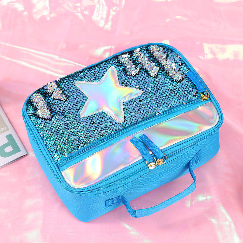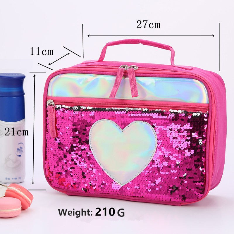 만화 반짝이 스팽글 소녀 도시락 가방