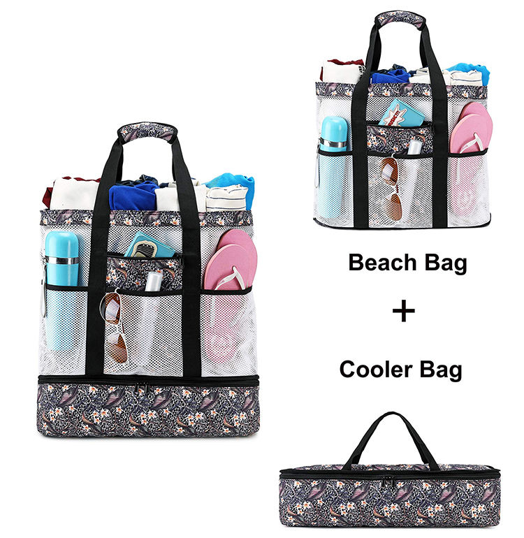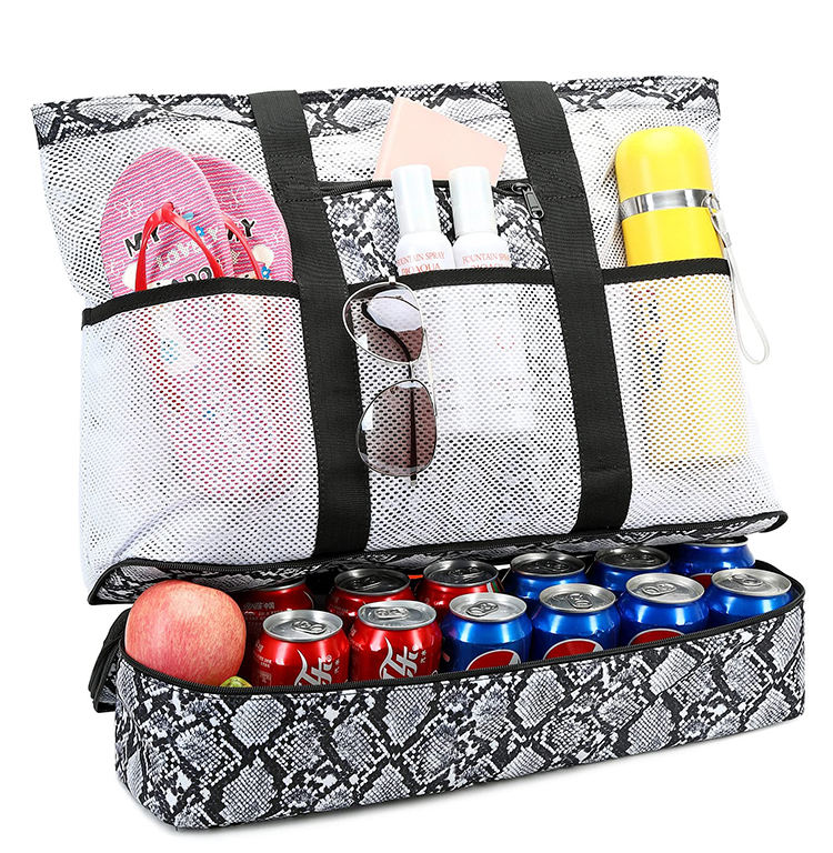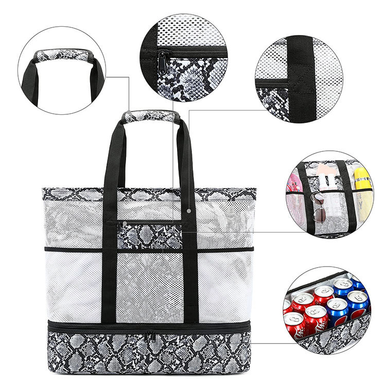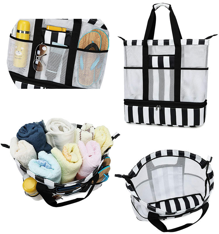 대형 쇼핑 식료품 수영장 피크닉 토트 메쉬 핸드백