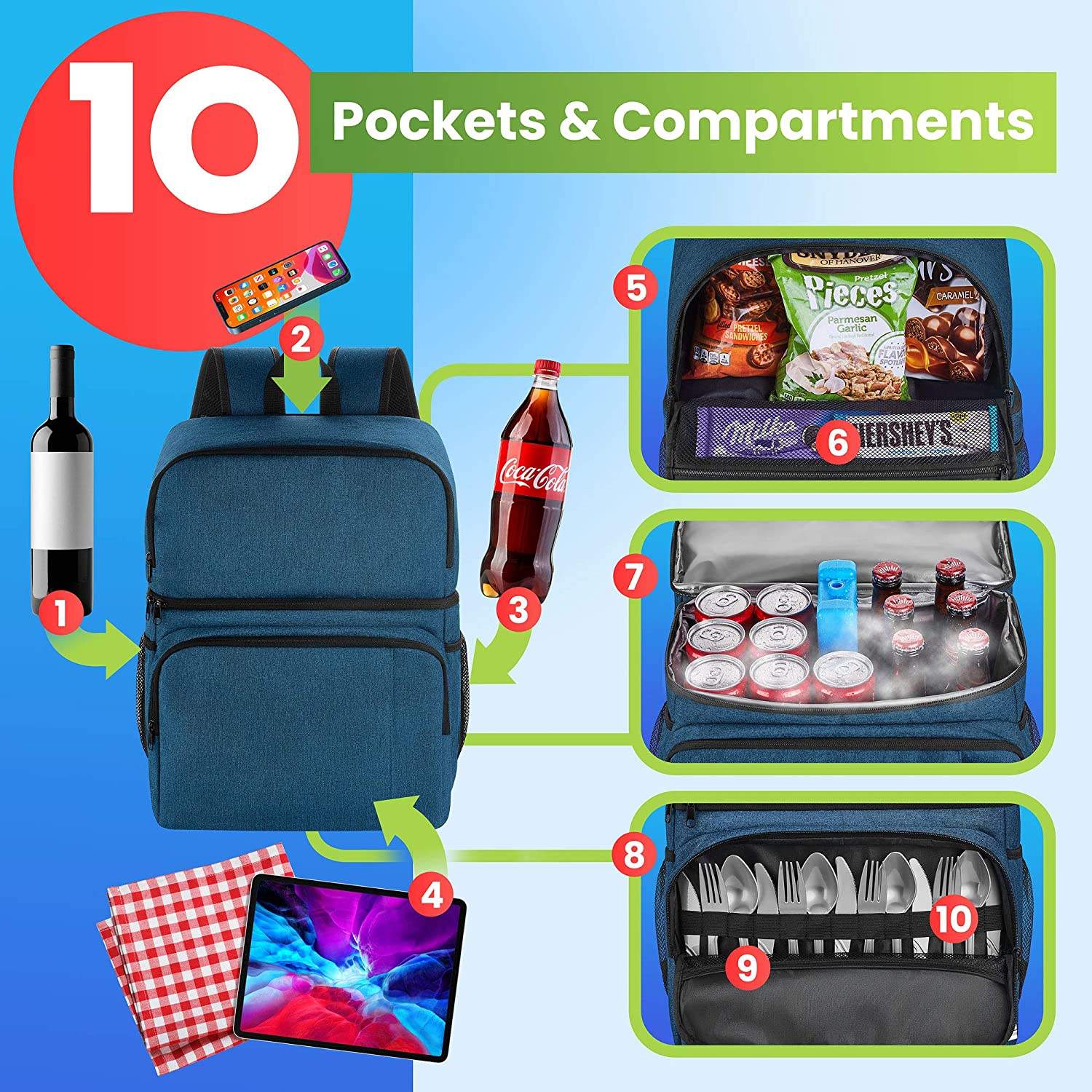 다기능 방수 야외 피크닉 휴대용 더블 레이어 이동식 열 보존 쿨러 가방