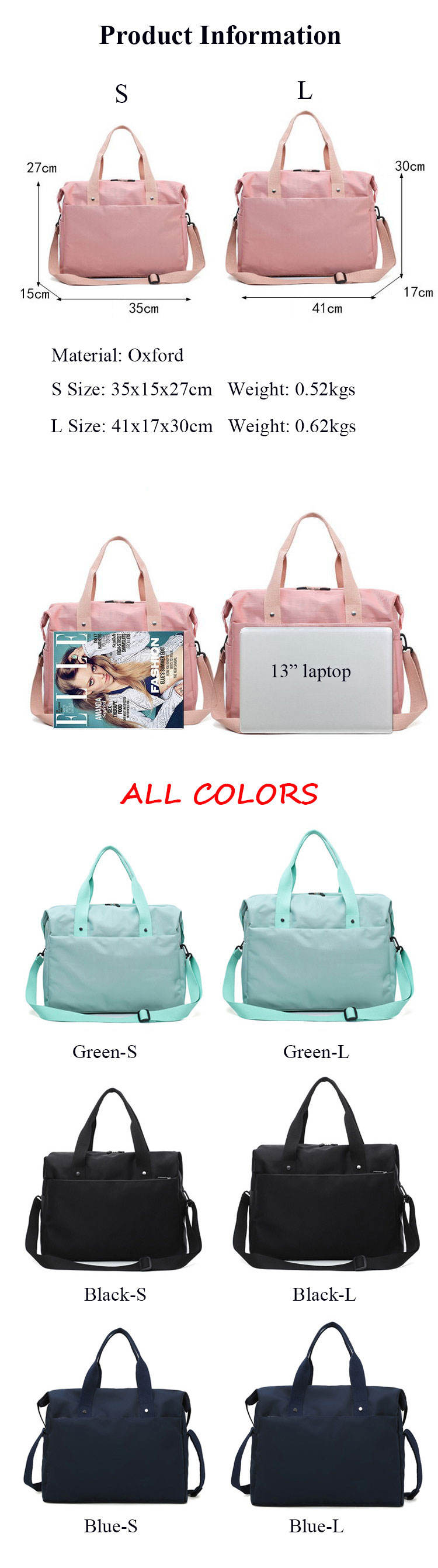 • 크기: 모든 사이즈 가능 35x15x27cm, 0.52kg;L 크기: 41x17x30cm, 0.62kgs