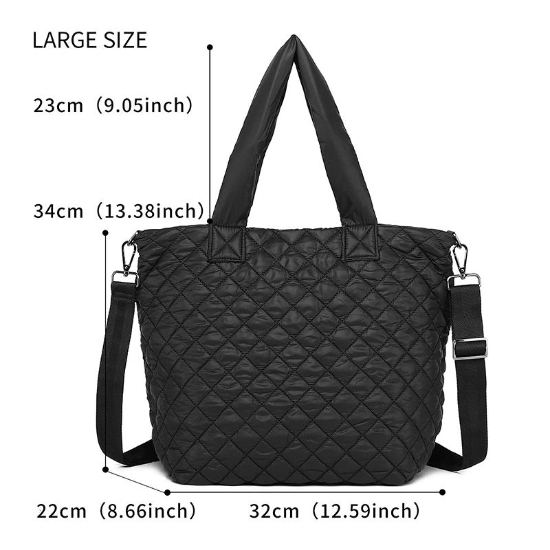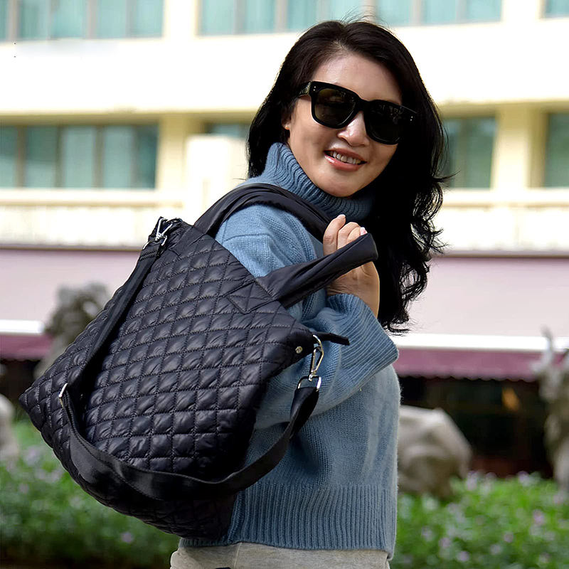 여자 패션 블랙 소프트 쇼핑 면 패딩 퀼트 푹신한 토트 백