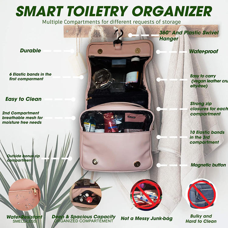 럭셔리 PU 여행 화장품 케이스 매달려 세면 용품 가방