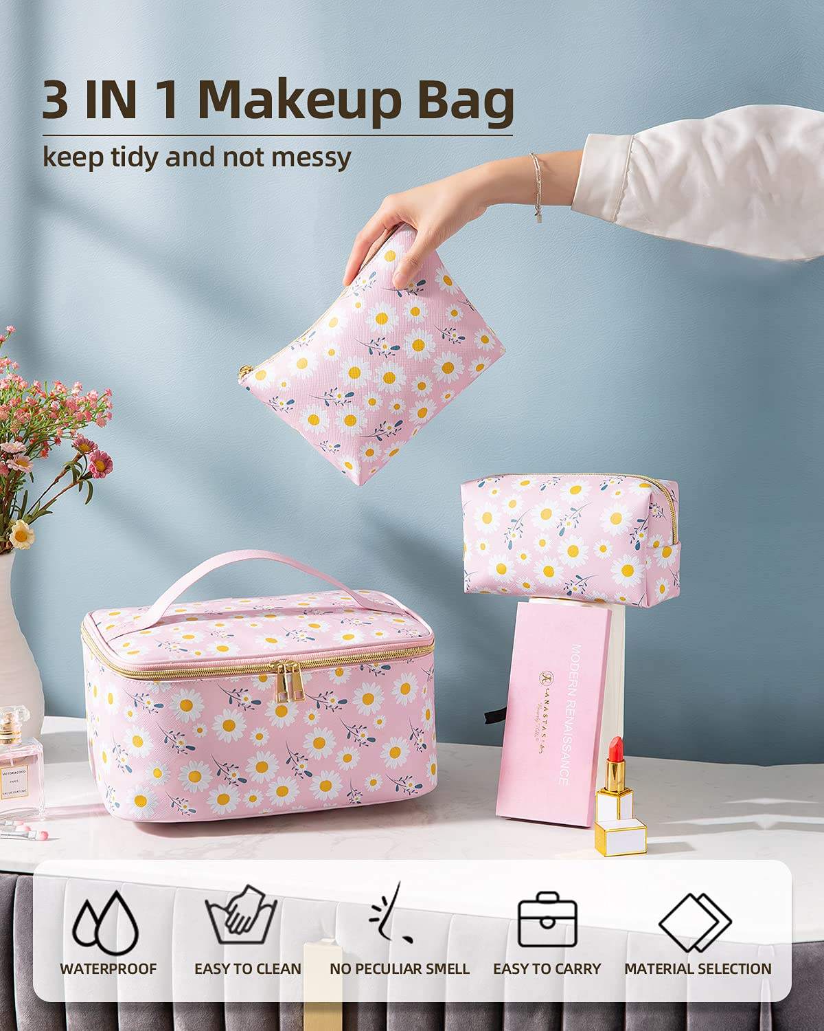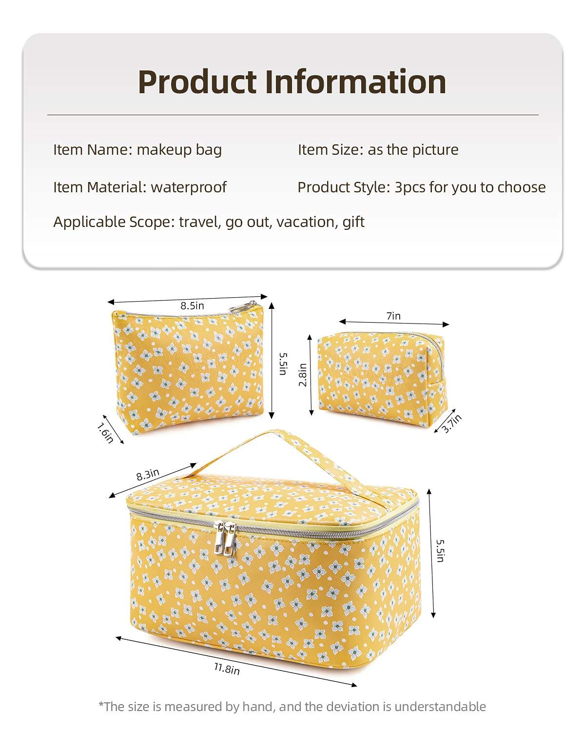 휴대용 경량 3 pcs 메이크업 파우치