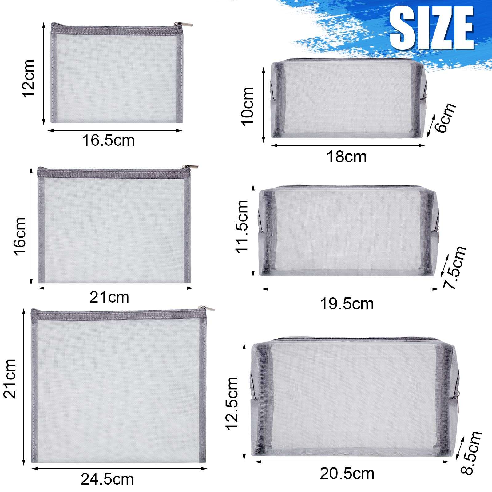 고품질 6 pcs 메쉬 메이크업 화장품 파우치 세면 도구 주최자 가방