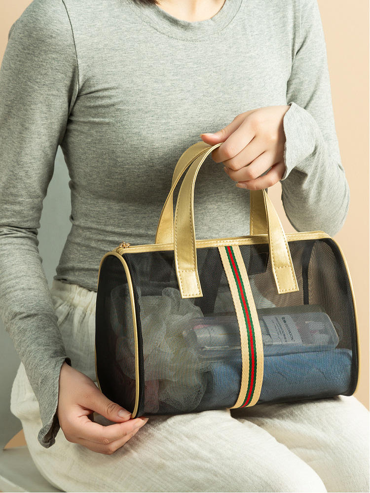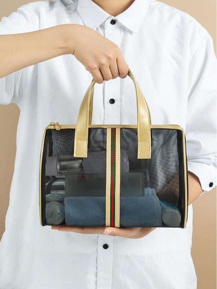 메쉬 대용량 방수 고품질 폴리 에스테르 여행 세면 용품 메이크업 화장품 파우치 가방
