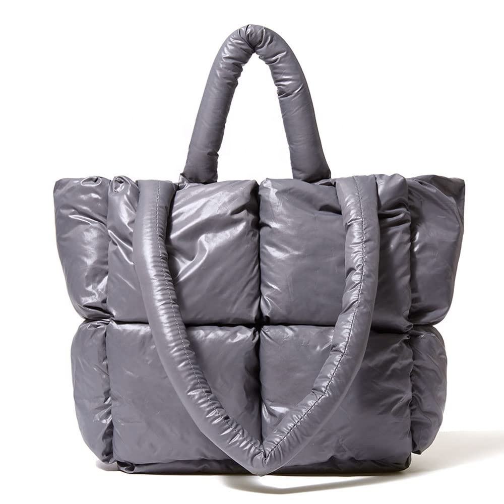 가벼운 오버사이즈 인과 주머니 코튼 대형 퀼트 퍼프 토트백